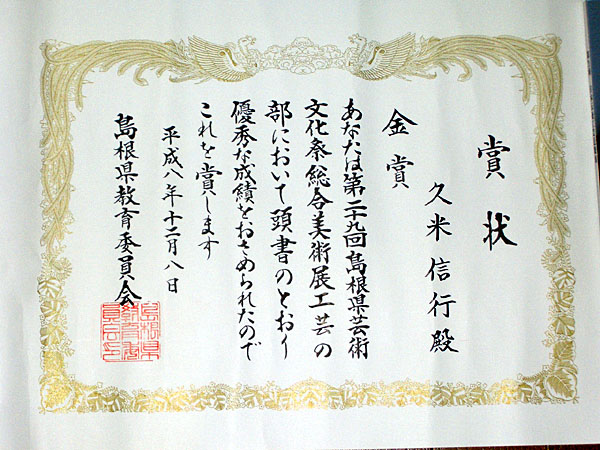 - 日本伝統工芸近畿展及び、日本伝統工芸展(全国大会)で、入選の一つ上の賞である入賞を取ること。