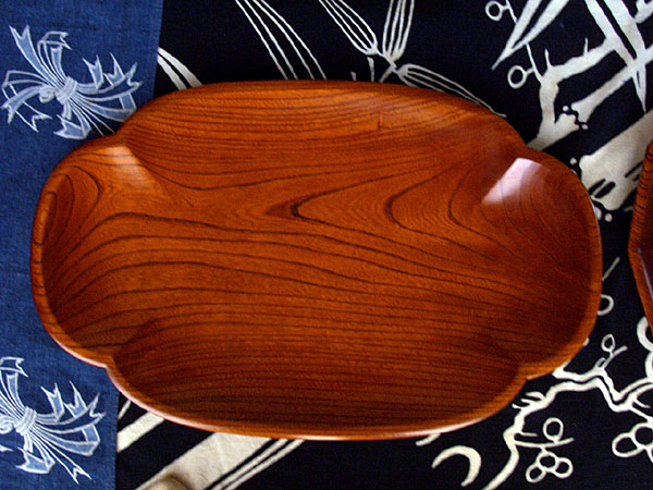 - 木目が素晴しい四隅に工夫が凝らされた盛器