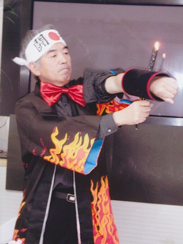 ネタが分かり「子供だまし‥」の気持で微苦笑する筆者の心を見透かされ、服装まで変え次々とマジックを眼前で演じられ、冒頭からマジックショー開幕となる。(ダジャレも少し混じるが)笑いを誘うトーク、パソコンが得意で分かり易くまとめられた資料、きれいに整理されたアルバム等を拝見し、メイン取材は早々に終了する。