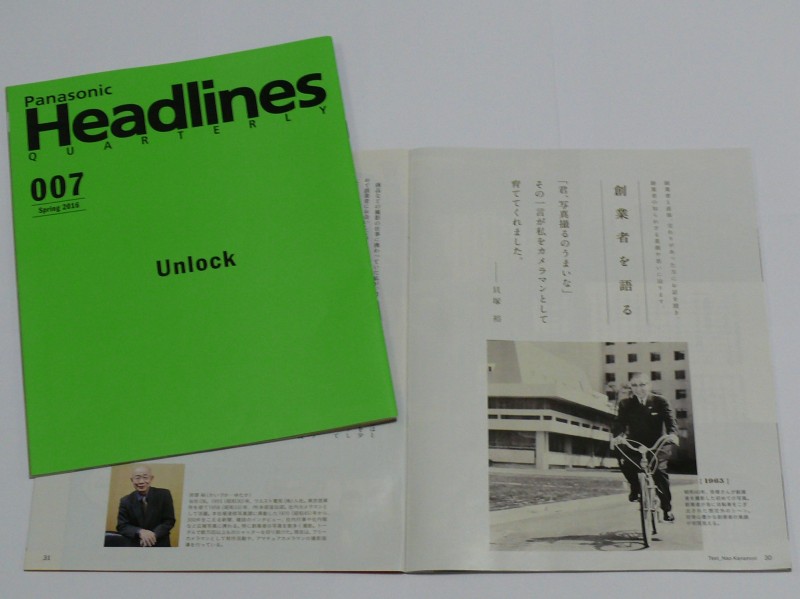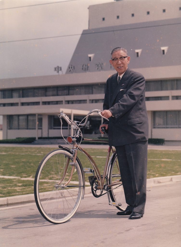 創業者の初ポートレートは、技術本部前で自転車の傍らに立つ創業者の撮影であった。(写真掲載) とても緊張した。予定の撮影が終わると創業者が、自転車に乗り走り始める。慌ててシャッターをきる一幕もあり忘れることのできない宝物である。