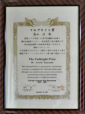 アメリカ寿を退いたあと、オレゴン大学・大学院生に”異文化経営論”を教え、その間、大学の理事、大学最高栄誉賞、日本で初のフルブライト賞を受賞した。米国通商代表部(USTR)Carla Hills大使、オレゴン州知事、バンクーバー市長、在オレゴン日本領事館・総領事など多くの方々から表彰を受ける。