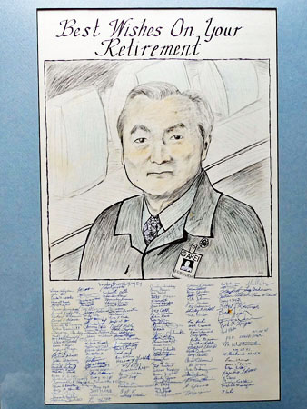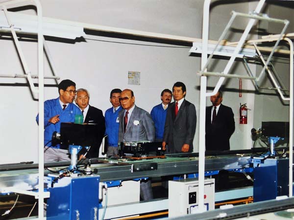 イランから帰国して5年、対米輸出課題解決の為(日本の対米輸出増大に対する貿易摩擦)イラン時代の寿電機との縁もあり、稲井社長よりアメリカにおける工場立地と現地生産を命じられる。米国西北部のワシントン州に工場設立、テレビ生産を嚆矢(こうし)に、ビデオ付テレビと順調に推移したが、平成4年(1992年)社長が逝去され、それを機に退社をお願いした。別れの際に貰った「似顔絵と全社員の署名(寄せ書き)」は、「どれだけ恵まれ、嬉しかったことか!」と仰る。