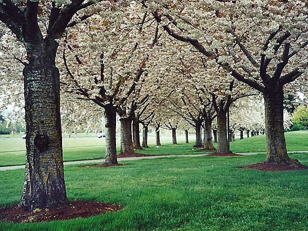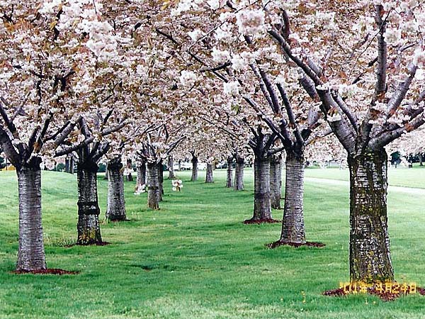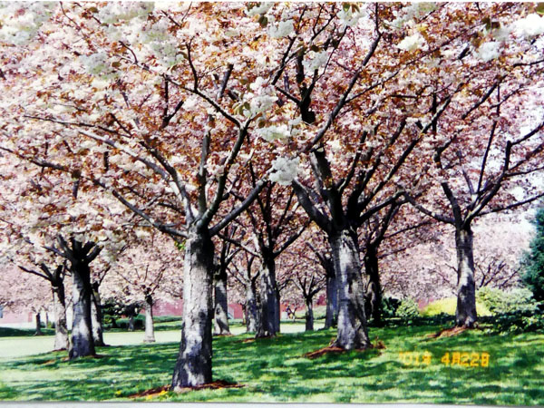 アメリカ寿電子工業がここまで来られたのは、現地の政・財・学・市民のご協力のお蔭と感謝の意を込め、私財を投じ「100本の桜の苗木」を寄贈した。それから20数年大きく育った桜は市民の憩いの場として、名所となっている。