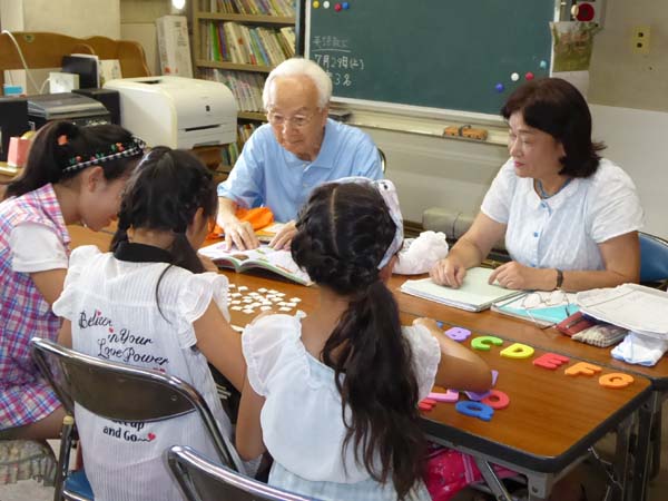近くの教会で若い子供達に、英語の勉強に困らないよう「学校で教えない英語」を蔭山流で教えている。これは「余生最後の奉仕活動」と仰る。