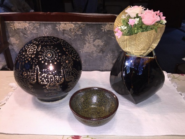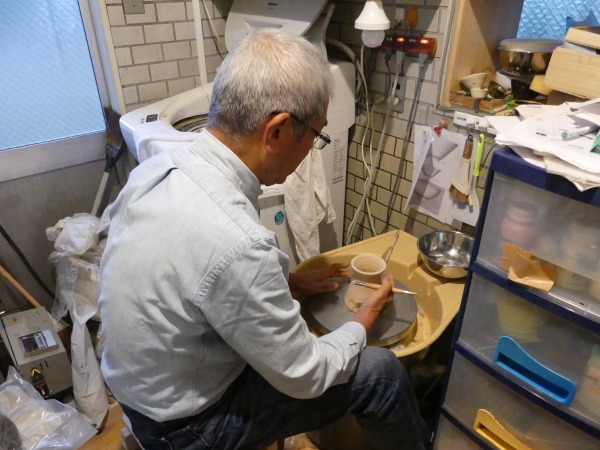 自宅には電気窯、電動ロクロを設置し、松下電器の先輩で陶芸部の会員でもある岩田 和友氏を師匠と仰ぎ、陶芸部で5回/年の勉強会(2018年11月で通算126回)を通じて切磋琢磨して相互の力量UPを図っている。