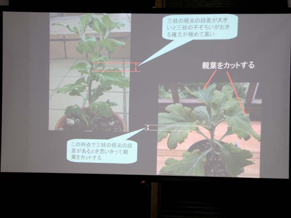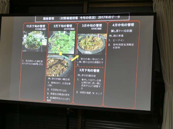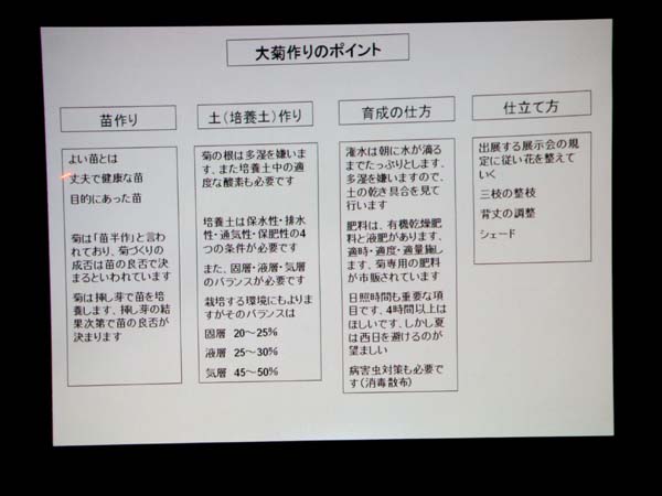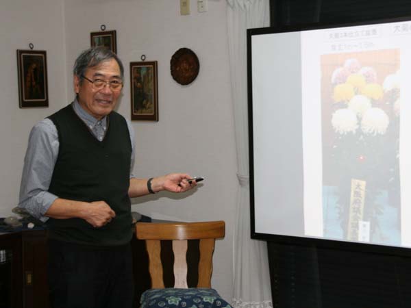 菊づくりの講師をされている。(下記は講義資料の一部)