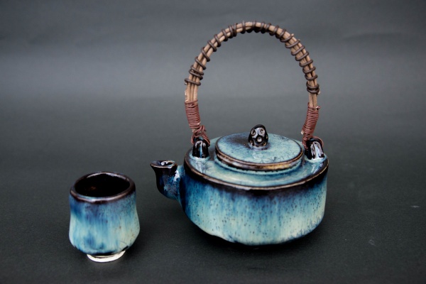 - 鉄瓶風茶器 白マット釉・マンガン釉