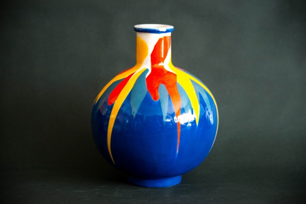 作陶での形状はほぼ思う通りのものができますが、釉薬を掛け本焼き後にはなかなか思うようにはいきません。陶芸は ” 釉薬と焼成による変化 ” が魅力です。釉薬の二重掛け(2種類の釉薬を掛ける)による窯変が魅力で、本焼き終了後に窯出しをするときは、出来栄えに対する不安と期待に常に興奮します。