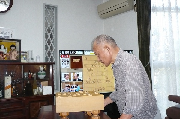 私は、四国愛媛県松山市の小浜(中島と言う島)に生まれ、小学校4年生の時から遊びの中で将棋に親しみました。はさみ将棋から積木崩し・周り将棋 等、5年生くらいから本将棋に夢中になりました。中学まで島で育ち、高校は島を出て松山市内に出ていきました。高校では将棋から離れていました。昭和45年に松下電器に入社して寮生活がスタートしました。寮では将棋好きな仲間と手合わせをしていました。