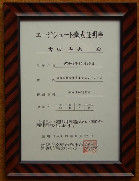 2007年8月27日 松市会例会にて吉田 和也さん(79歳)がグロススコア79でエージシュートを達成!