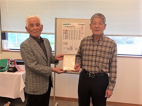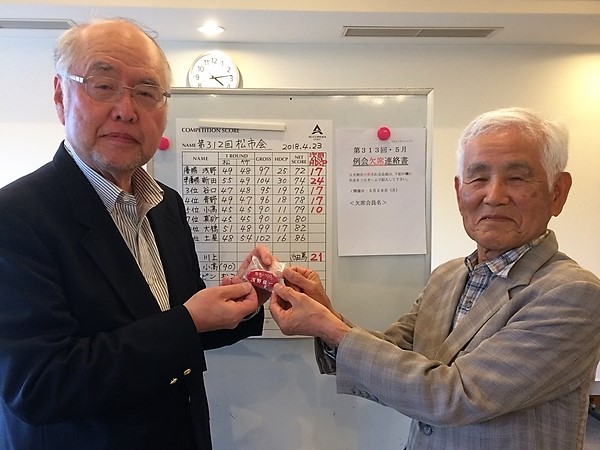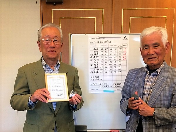 2022年3月度例会で、新会員・初参加の川村 嘉春さんが77歳・グロススコア75のエージシュートを達成されました。