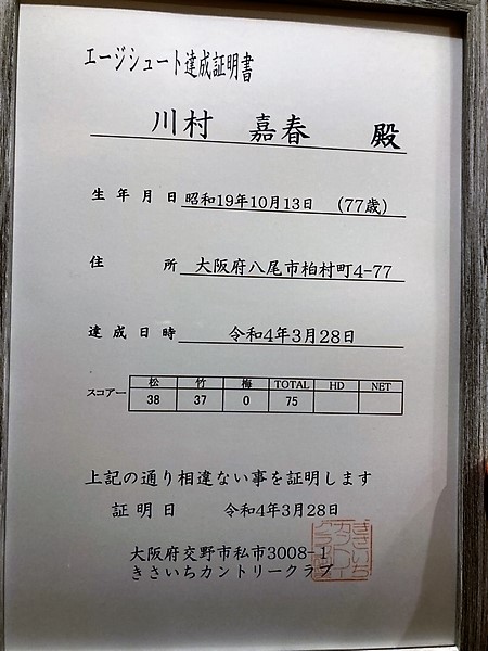 2022年3月に川村 嘉春さんが松市会2人目で15年ぶりのエージシュート達成!