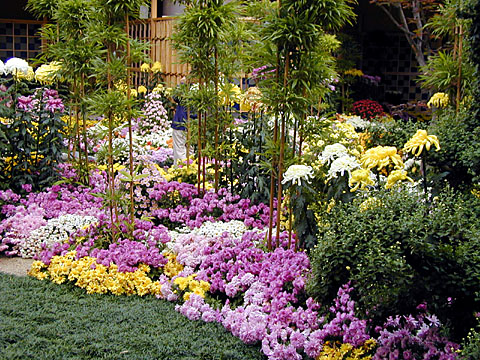 菊人形の会場周辺には見事な大菊や懸崖が展示されている