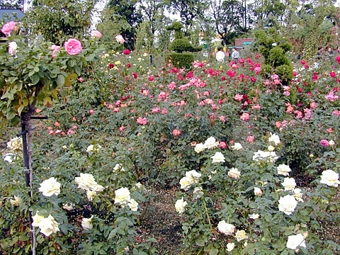 四季咲きのバラが美しい「バラ園」も菊人形と並ぶ人気者