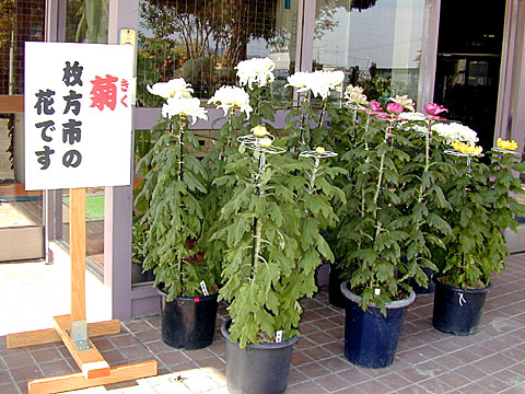 枚方市の花は1962年に「菊」に制定された。これは枚方市の伝統的芸術「菊人形」と結びつきが深く、土地が栽培にも適しているからという。 枚方市役所のすぐ横には今年も市民が栽培した「菊花展」が盛大に開催されている。