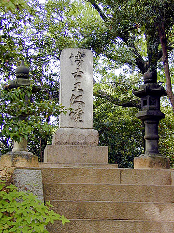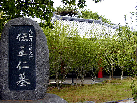 - 「博士王仁墓」と刻まれた墓碑