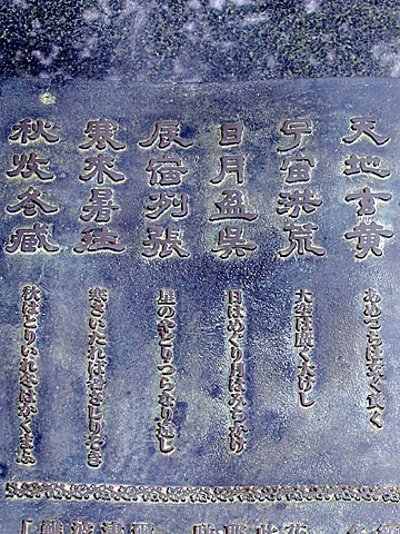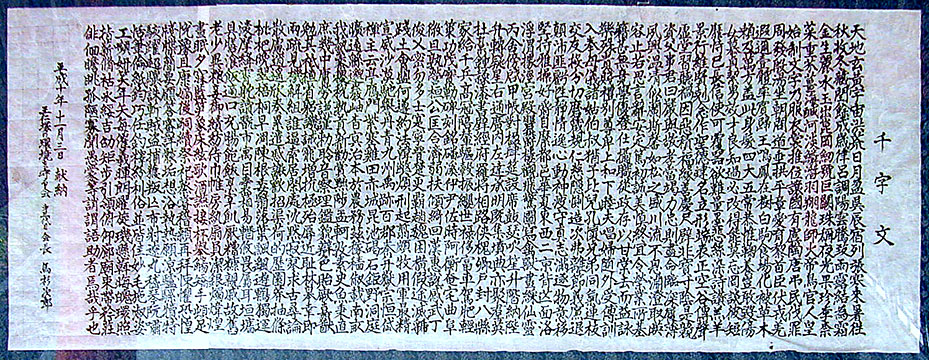 王仁が日本に漢字を伝えるため持ってきたといわれる「千字文」は、文字どおり千の文字が重複なしに使われ、しかも全体で詩になっていて、人としての倫理も説いた格調高い書になっています。しかし「千字文」は4世紀には存在せず、6世紀前半に編纂された物であることなど時代的には疑問も残ります。