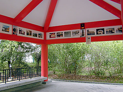 - 朱塗りの柱と瓦が百済の雰囲気を漂わせる休憩所