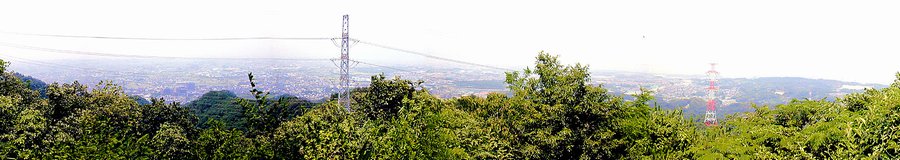 ここからの展望は河内、摂津、山城を一望でき、西には鷹塚山を頂点とする低い台地が連なり香里丘陵が北に延びています。さらに淀川を隔てて遙か北摂の連山、少し離れて六甲山塊の美しい姿が見えます。北に目を転じると真下に惣喜池・井出口池、王仁公園の向こうに長尾大池、やや西に山田池公園の緑、木津川、宇治川、桂川の合流地点をへだて京都の市街が広がり、その向こうには比良・比叡の山容を望めます。南東は大和につながる山並みで、その東には南山城平野を貫いて木津川、その向こうには笠置に続く鷲峰山みられます。