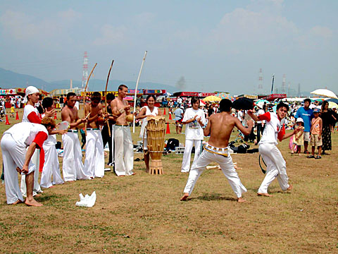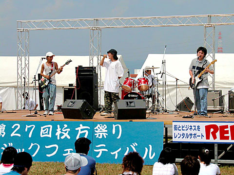 広い会場には二つの舞台が設けられていました。会場中央付近の舞台では「ミュージックフェスティバル」が開催され、若者が次々と熱い演奏を披露していました。