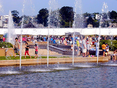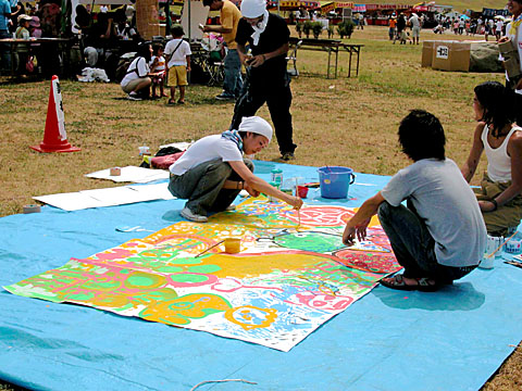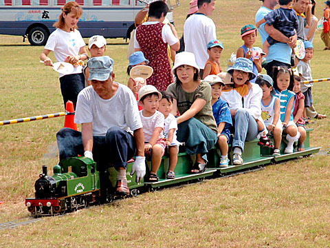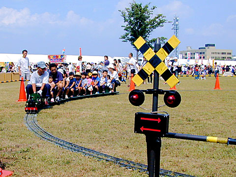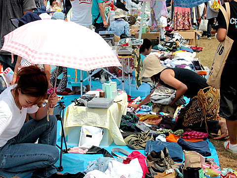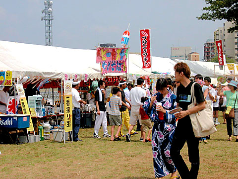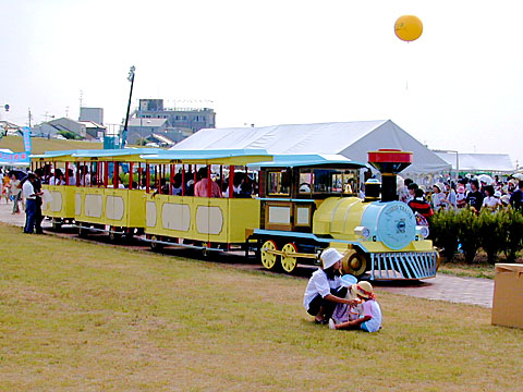 会場内の遊歩道を周回する「まつりトレイン」は乗り降り自由で、炎天下の会場内の移動も楽に行えました。またリサイクル品、掘り出し物などを探し当てる「フリーマーケット」は市民の出店で、 まつりの宝箱とも言えます。