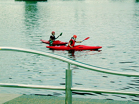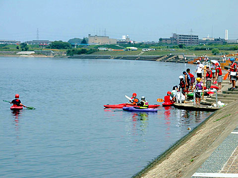 恋人たちの格好のデートスポットの川岸では「リバーカヤック・カヌー体験試乗会」が行われていました。事前に枚方カヌー協会に応募した人たちが、見え方が全然違う淀川から見る枚方の風景を味わっていました。