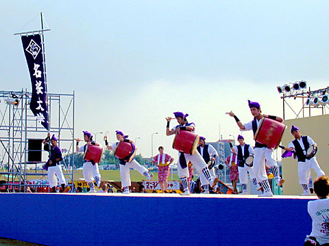 また枚方大橋近くには「夢・くらわんか踊参来(よさこい)大会」の大舞台が設置され友好都市名護市から名桜大学が「エイサー」を披露してくれたり、交野市の中学生がジャズダンスを披露してくれたり、花火大会が終演するまで、新しい枚方よさこい音頭の披露や会場を巻き込んでの踊りなど様々の団体の演技が続いていました。
