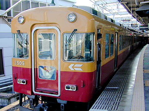 創業当初からの車両1形は1両編成で全線2両編成になるのは、昭和元年に入ってからである。当初は普通列車のみで、天満橋-五条間の所要時間は、100分かかっていた。大正3年ノンストップ急行を終電後に走らせる試みがされ、60分で走った。