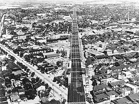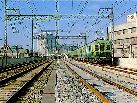 蒲生-守口間の七曲の路線を直線化し、複々線化が計画されたが地盤が悪く高架でないと困難なことから、一気に複々線高架の大工事を決定、S2年申請、S3-S8年にかけて順次開通した。当時この方式は、国鉄中央線でのみ導入されていた画期的なもので、その後S57年には寝屋川信号所まで延長され民間最長の高架複々線として大量輸送時代にに大きな役割を果たした。