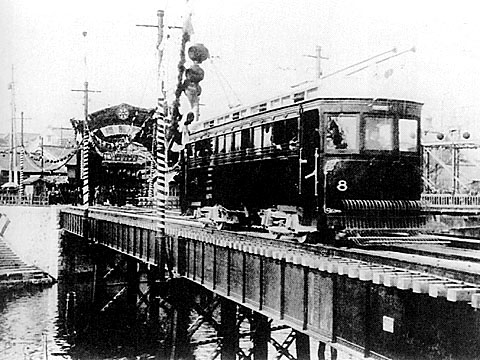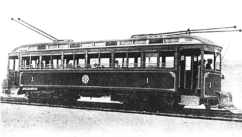 木津川・宇治川の橋梁などの難工事も多かったが、明治43年3月には全軌道46.57Kmが完成した。一方車両建造は大阪市との市電相互乗り入れの契約から、長さ15.55m、幅2.59m、高さ2.89mと決められ、川崎造船所と日本車両に15台ずつ発注イギリスから電動機などの主要部品が到着、1両編成の木製ボギー電動車1形車両が30両完成した。
