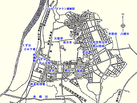 京阪は新京阪時代に新京阪沿線の宅地開発を手がけていたが、京阪沿線では、宇治、香里、森小路、牧野など、比較的小規模なものが多かった。S33年に完成した日本住宅公団の第1号の東洋一のニュータウン『香里団地』建設への協力の経験を活かして『くずはローズタウン』の建設に取り組んだ。