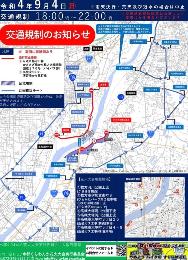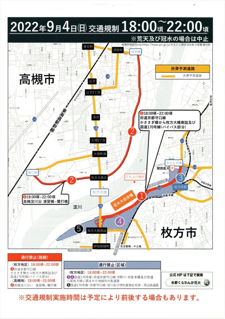 「水都くらわんか花火大会」当日の交通規制は、こちら をご覧ください。