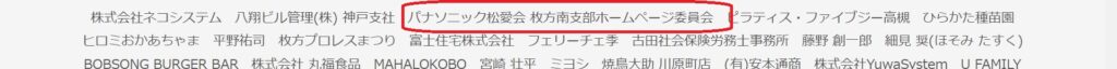 HPに掲載されている、パナソニック関連(パナソニック パンサーズ・枚方南支部 HP委員会)の協賛(Sponsor)