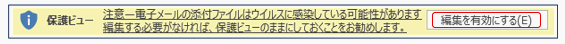 添付ファイルを開くときは知人からなど問題がないことを確認してクリックしてください。Officeのマクロ機能に潜むマルウェアなどの対策として、クリックしたときに下図のような保護ビューが開き「編集を有効にする」とのボタンが現れますが、これは押さずに文面を読むことをお勧めします。