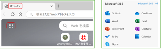 Edgeで「新しいタブ」を開いて※左上にある「9点ドットメニュー」からサインインすることができます。