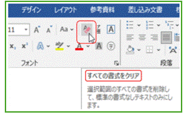 Word画面に取り込んだWebページのすべてを選択して、下図のようにWordの「ホーム」タブの「すべての書式をクリア」アイコンをクリックします。この操作でWordのデフォルト設定以外の書式はすべてクリアされます。その後、必要ならWord特有の書式を設定することは自由です。