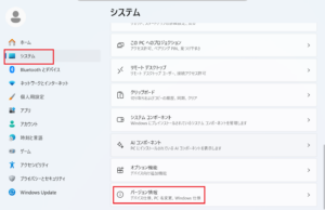 2) 左ペインの「システム」の中にある「バージョン情報」をクリック