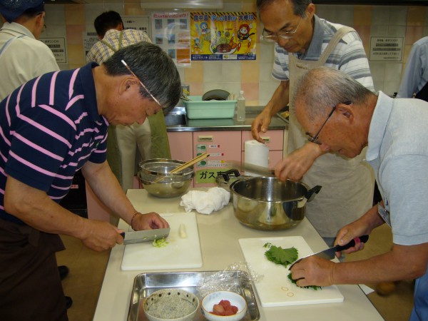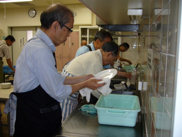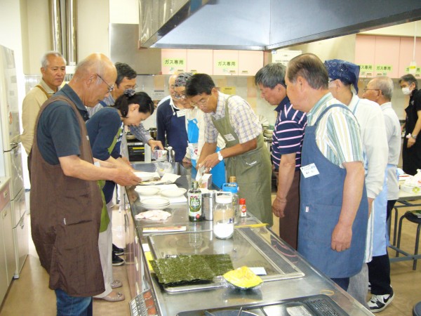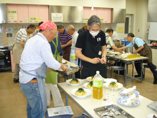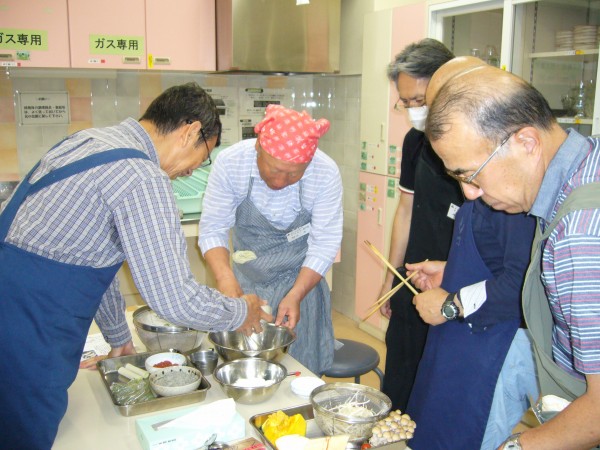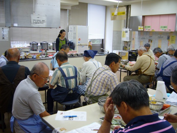 現役時代、単身赴任が長く続いたので些か料理には自信あったつもりでしたが、加藤先生の解りやすい説明と皆さんの手際の良さに接し、私のは単に食材加工であったと深く反省をしております。