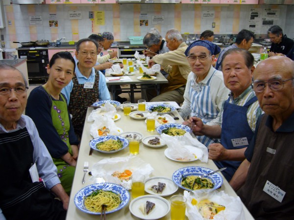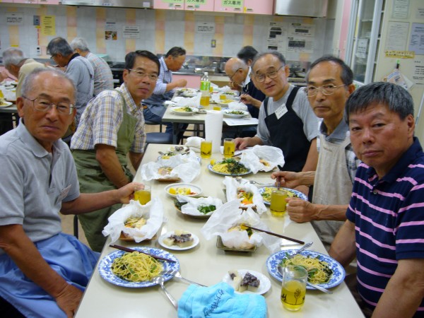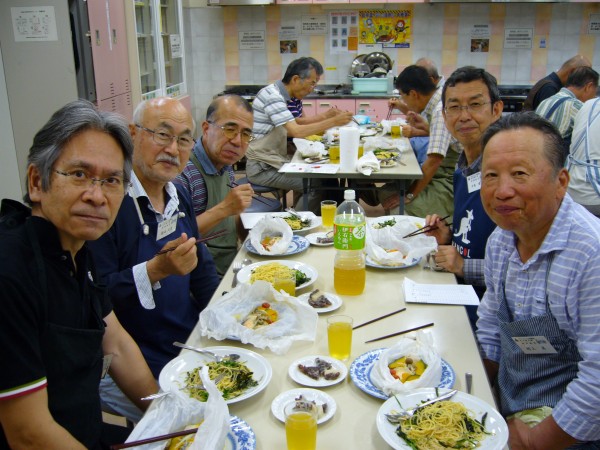 現役時代、単身赴任が長く続いたので些か料理には自信あったつもりでしたが、加藤先生の解りやすい説明と皆さんの手際の良さに接し、私のは単に食材加工であったと深く反省をしております。