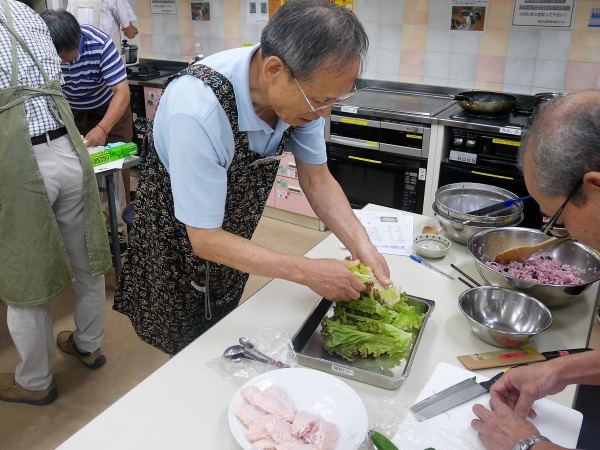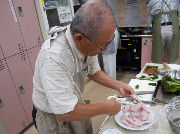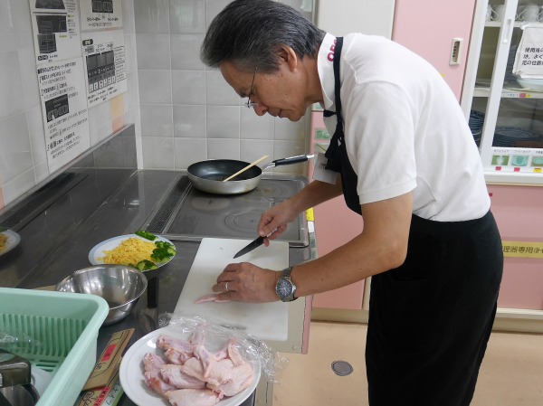 次に、先生からレシピに従い、実演も交えながら、料理手順の説明があり、いよいよ料理開始です。