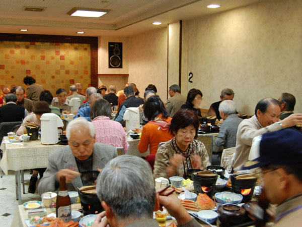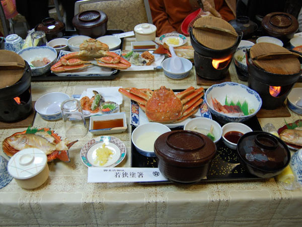 時は既に11時20分。予定時間より遅れていたのでスケジュールを変更して昼食会場「若狭松風」に移動。前菜、お造り、若狭ガニ、尾頭付鯛の焼き物、よせ鍋、てんぷら、茶碗蒸し、越前蕎麦、ご飯、の豪華昼食を堪能し、次の目的地「箸のふるさと館 WAKASA」へ移動。