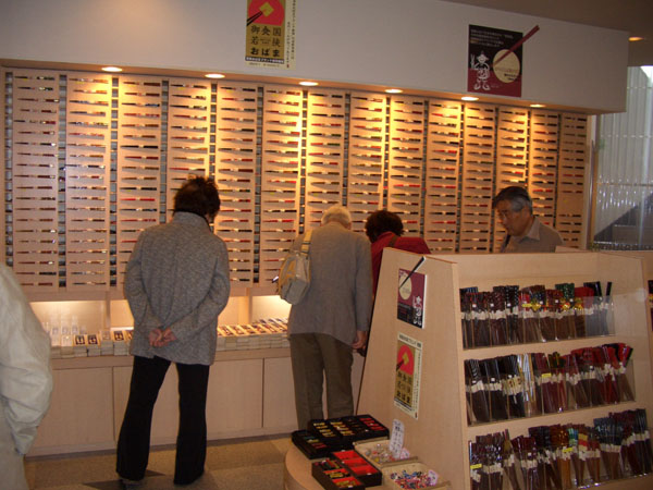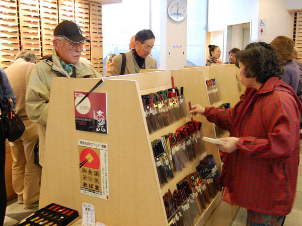 館内には約3,000種類もの若狭塗箸が展示即売されており、箸研ぎの体験もできる。若狭塗は江戸初期に小浜藩の御用塗師「松浦三十郎」が支那漆塗の一種在星をヒントに、海底の様子を意匠化して考え出したのが始まり。江戸中後期にかけては若狭塗の黄金時代で、箔押し研出し技法(青貝・卵殻)、螺鈿以外にも蒔絵の技法も併用され、200種以上にも及ぶ塗手法が完成されたと言われている。