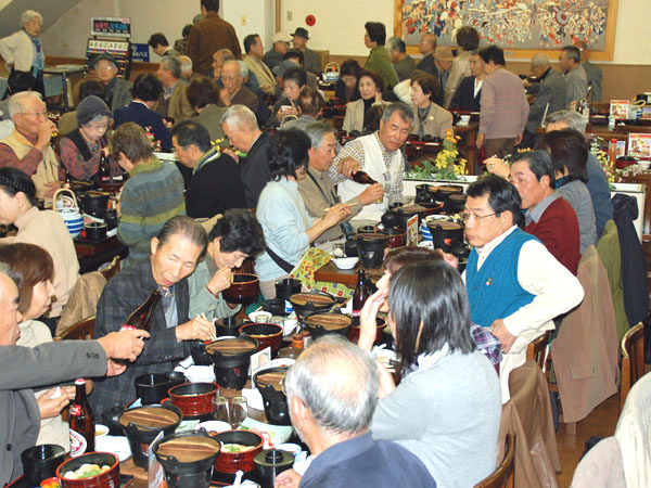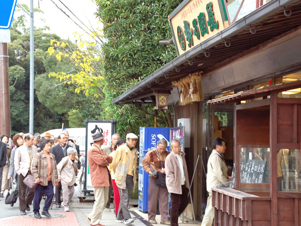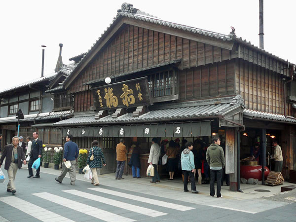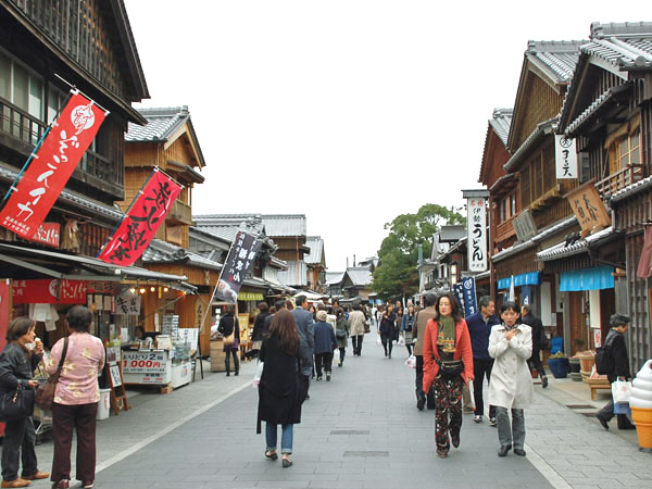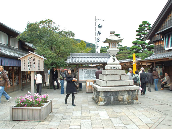 伊勢神宮参拝後は、昔ながらの風情がたっぷり残っている門前町の「おかげ横丁」や「おはらい町」を散策。商売繁盛の赤福本店で「赤福」を食べたり、客寄せの声や乾物の焼く匂いに誘われたり、酒造場でのきき酒を飲んだり、気持ち良くそぞろ歩きのショッピングを楽しみました。皆さんを魅了したお伊勢参りの旅は、美しい秋の夕日を見ながら楽しい思い出を乗せて、枚方に18時に無事に帰着しました。