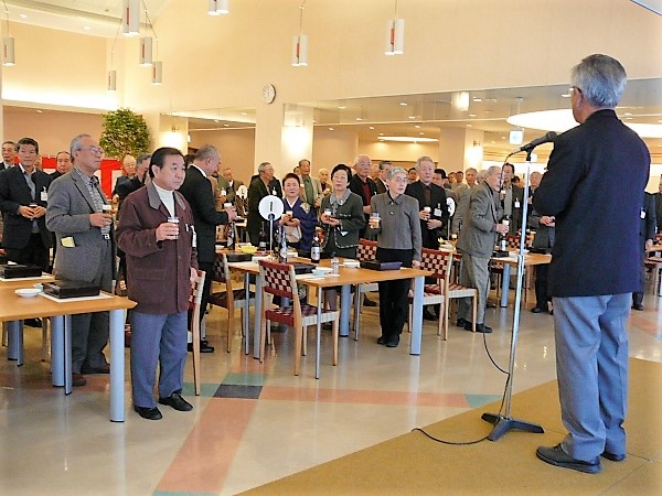 恒例の抽選会では、番号が引かれる度に歓声や拍手で当選された方をお祝いするなど、「あっ」という間の2時間であった。中締めは、7度目の年男を迎える古田泰司さんの、松愛会発展と会員の健康を祈念した万歳三唱で盛況裡にお開きとなった。