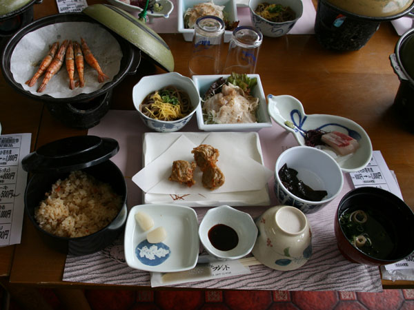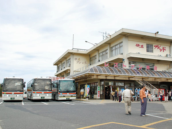 砂丘が一望できる「砂丘フレンド」での昼食は「松茸ご飯とモサえびの陶板焼き」に舌鼓。食事の後はレストラン売店で試食したり、家族や友人への土産の買い物、レストラン前の砂丘を散策したり自由な時間を楽しみました。