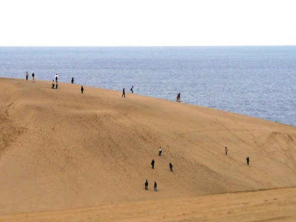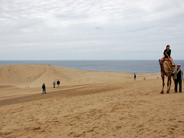 最初の休憩を赤松PAでとった後は車の量も少なくなり、両側には稲穂の黄金色と、一段と美しいまんじゅしゃげの赤色とのコントラスト等、変わっていく風景を車窓から楽しみながら鳥取道⇒一般道へと走り2回目の休憩所「あわくらんど」に到着。地元で取れた品物が格安で販売されており、珍しいアケビ等、秋の特産品を購入。予定より大幅に遅れ、鳥取砂丘に到着。
