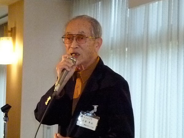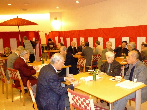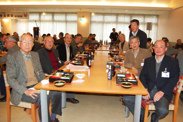 第1部の新春挨拶は、小髙地区委員の司会で始まり、重田支部長から新春の挨拶と、昨年1年間の活動報告が行われた。昨年は東日本大震災等で不安な1年であったが、今年は昇竜の勢いで隆盛を祈念すること、松愛会設立40周年・枚方南支部設立25周年という節目を迎え、「身近で親しめる支部」を目指し、より多くのご参加を頂いて、有意義なひと時の輪を一層広げたいこと等が報告された。また2012年度の行事計画案が報告され、更なる参加の要請をされた。
