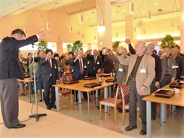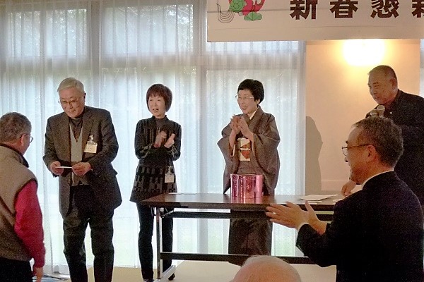 恒例の抽選会では、番号が引かれる度に歓声や拍手で当選された方をお祝いするなど、「あっ」という間の2時間であった。中締めは、年男の小畠章次さんの一本締めで、松愛会発展と皆様の健康を祈念し、盛況裡にお開きとなった。