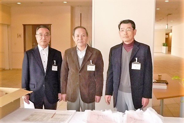 - 会場内受付(左から重田支部長、角田副支部長、平野会計)