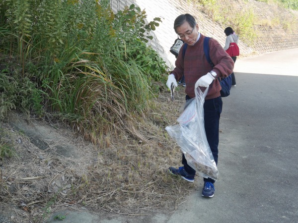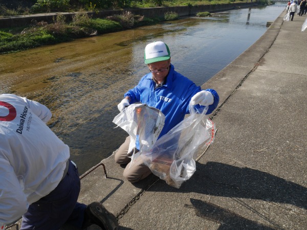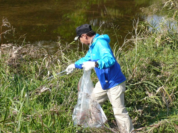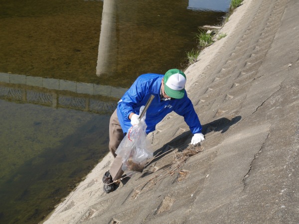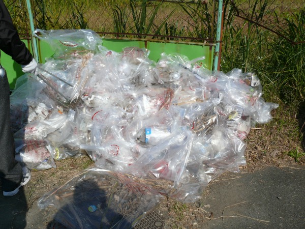 列の後方だったため、ゴミを見つけるのも難しい中、 土手の草むらや川べりなどで積極的に約1時間にわたり清掃活動を行い、昨年同様の回収実績でした。